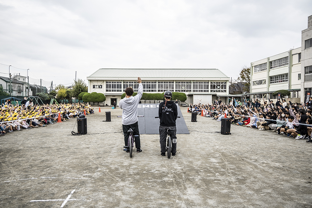 あなたの学校に日本を代表するBMXライダーが訪問!BMXという特殊なキャリアを選択し最前線で戦っているライダーの生き方や夢・目標に迫る授業と、ジャンプ台を使った空中トリックが生でみられる特別授業。普段の生活で味わうことのできないBMXならではの刺激が満載!BMXで心に残る1日を、ぜひあなたの学校で。